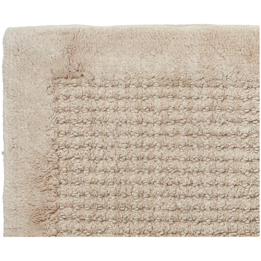 Our fashionable bath mat, available in white, gray, blue, and brown, made from high-quality natural cotton fiber, is a true eye-catcher for your bathroom. The pleasant texture offers a soft feel underfoot and contributes to sound insulation thanks to the plush pile height.