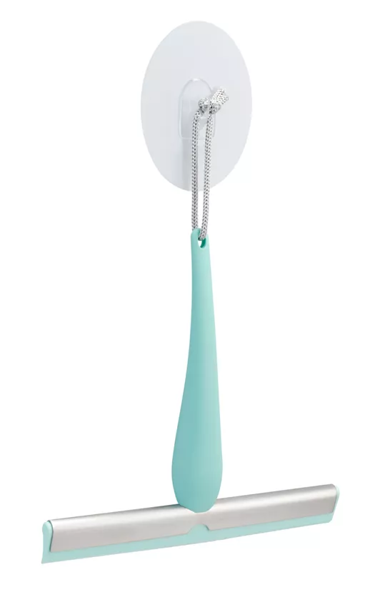 Notre squeegee de douche en couleur aqua rafraîchissante n'offre pas seulement des avantages pratiques, mais crée également une atmosphère vivifiante dans ta salle de bain. Il allie nettoyage efficace et design moderne, ajoutant une touche fraîche à ton espace.