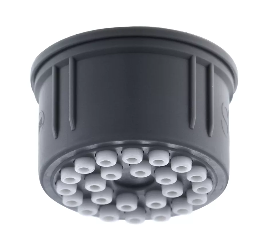 Einfache Reinigung: Dank der weichen Elastomernoppen lassen sich Kalkablagerungen an der Austrittsseite mühelos mit dem Finger abreiben, was die Wartung erleichtert und die Lebensdauer des Produkts erheblich verlängert.
