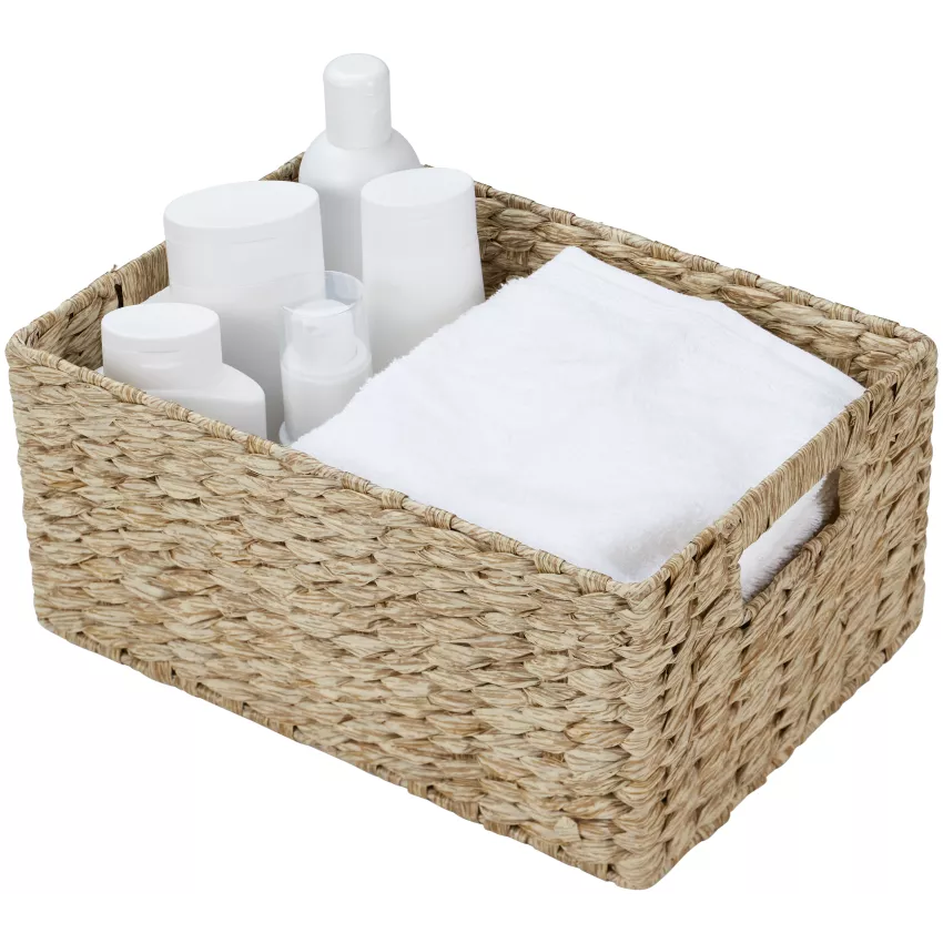 Der Flechtkorb Papiro bringt mit seinem praktischen Rechteckformat ein Stück Natur in dein Badezimmer. Mit einem Fassungsvermögen von 6 Litern bietet er ausreichend Platz für die Unterbringung diverser Badutensilien. Die stabilen und praktischen Henkel an beiden Seiten ermöglichen eine einfache Handhabung, selbst wenn sich schwerere Objekte im Korb befinden.